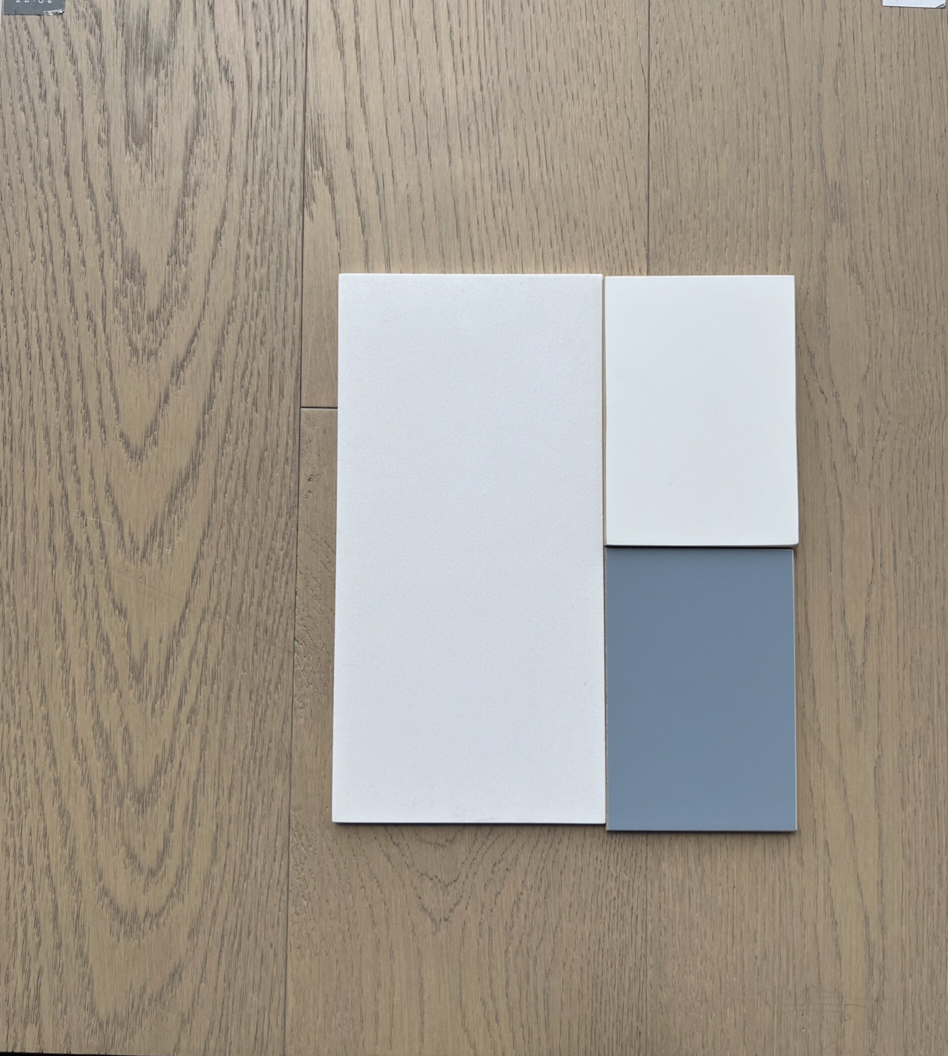 - Ensuite Tiled Shower Floors: Hex Mosaic, Cement Chic Matte and Glazed, 2" Tiles.